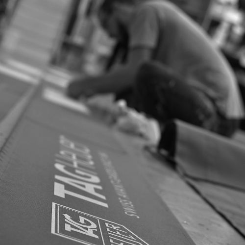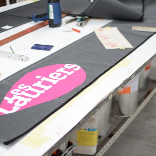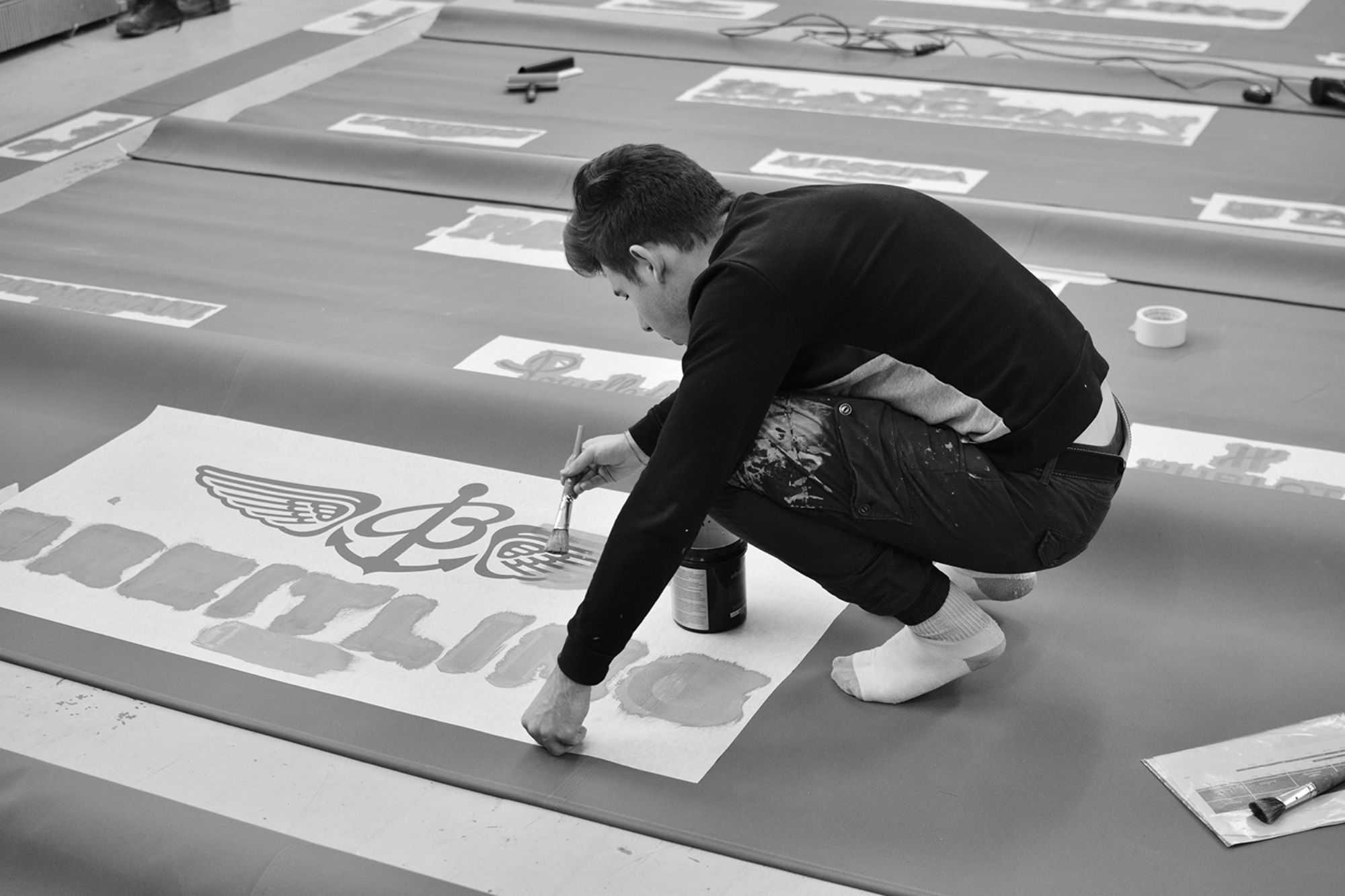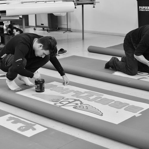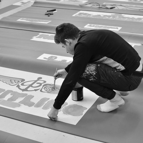Nous utilisons encore la technique artisanale de la peinture au pochoir pour personnaliser les lambrequins et toiles de stores.