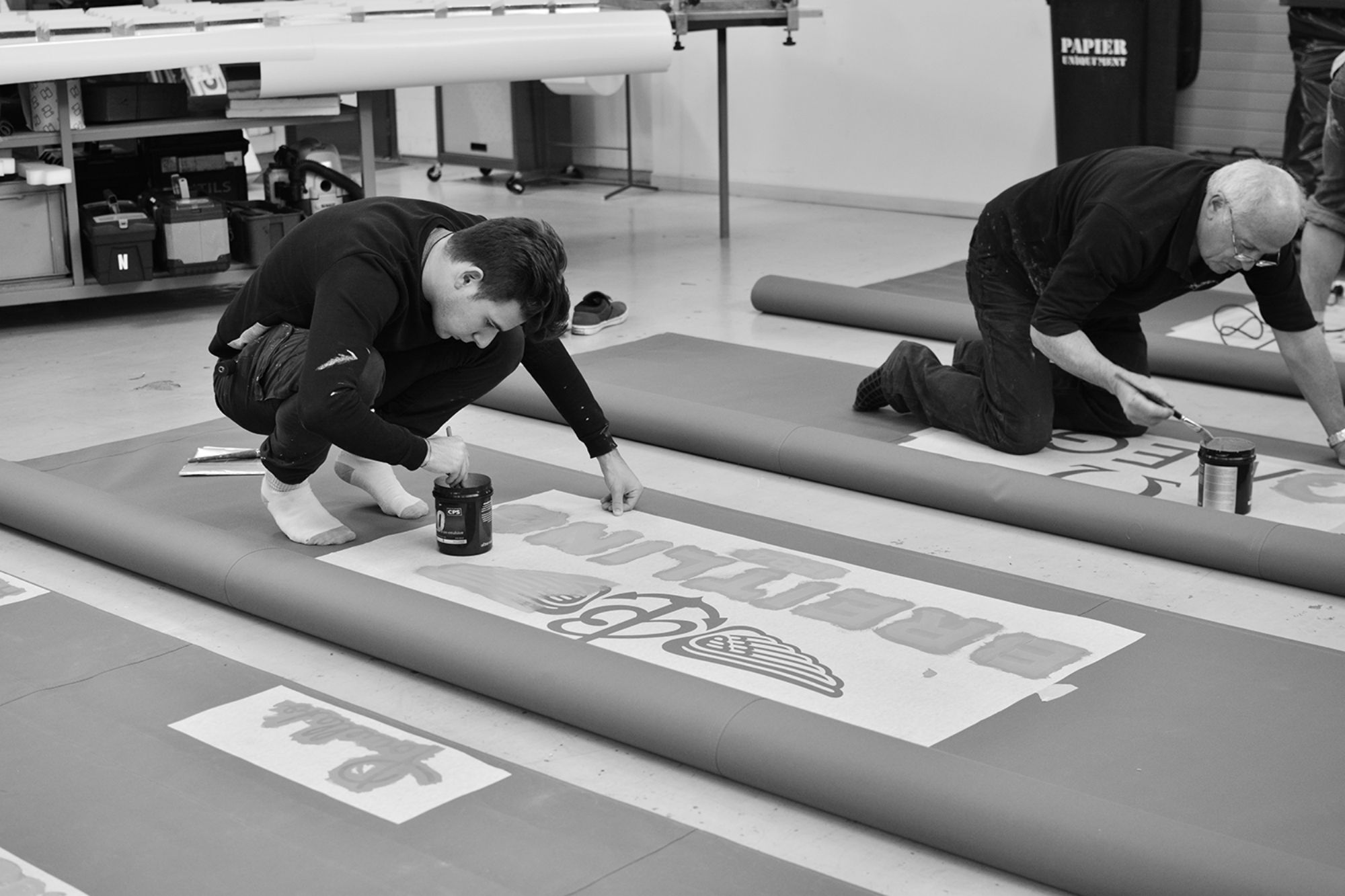 Nous utilisons encore la technique artisanale de la peinture au pochoir pour personnaliser les lambrequins et toiles de stores.